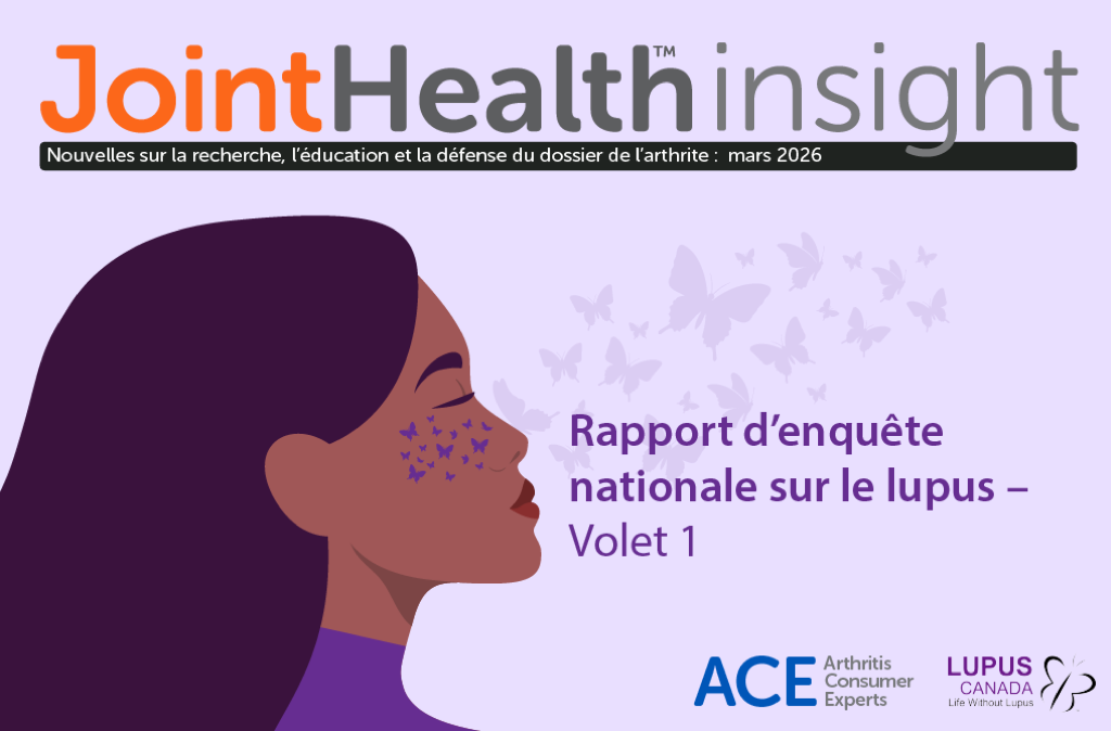 Dans un numéro spécial du JointHealthTM insight, le comité ACE présente les résultats d’une enquête menée en ligne, élaborée en collaboration avec Lupus Canada et les membres du groupe de travail sur le lupus.